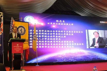 世界脊柱健康联盟主席陈忠良教授致大会欢迎词。