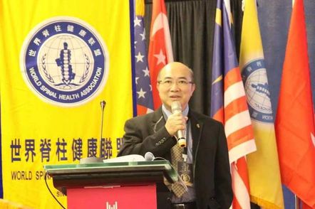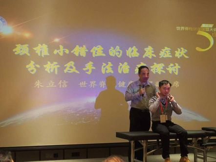 世界脊柱健康联盟脊柱高峰论坛,新加坡总会会长朱立信博士主讲《颈椎小错位的临床症状分析手法治疗探讨》